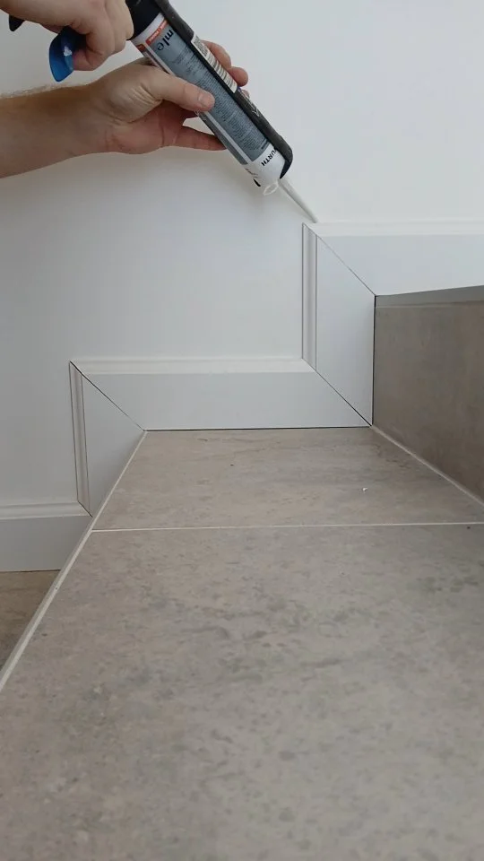 Finition avec la pose du joint de carrelage, des mastics silicone d’étanchéité ou acrylique de finition et nettoyage final